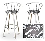2 Oakland Raiders NFL Football Themed Specialty / Custom Chrome Barstools with Backrest Set