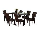 Wood Dark Espresso Kitchen Dining Table Set 6 Parson Chairs